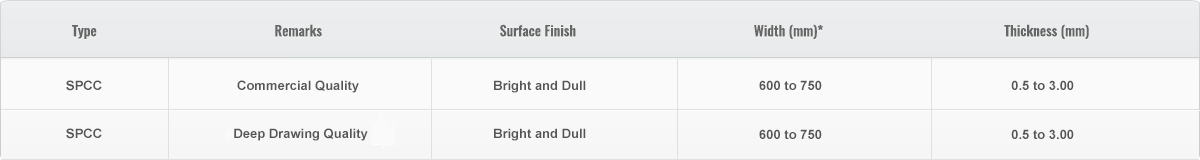 BBJ Steel produces Cold Rolled Coils (CRC) of international standard from imported Hot Rolled Coils (HRC). Our products are made according to the following recognized manufacturing standards; JIS-G3141, ASTM CS 1008 and equivalent.